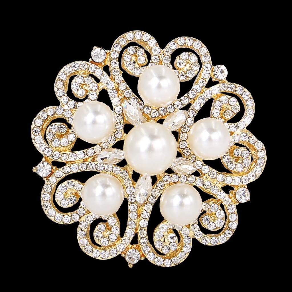 DIEZI Luxury Elegant Pearl Crystal Brooches For Women Wedding Bridal Sweet Cute Flower Rhinestone Brooch Bouquet Accessories