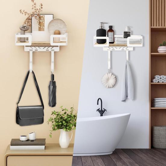 Enhanced Durability: Crafted from a blend of metal and natural wood, the widened frame design ensures robustness and longevity. With two wider hooks, this laundry room accessory combines strength with a rustic-modern aesthetic, securely storing your essentials.