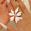 Fashion Exaggerated Dripping Oil Stereoscopic Alloy White Five Petal Flower Opening Ring