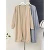 New Retro Gentle Wind V-neck Medium and Long Sleeved Knitted Cardigan Women's Simple Lazy Wind Jacket Top