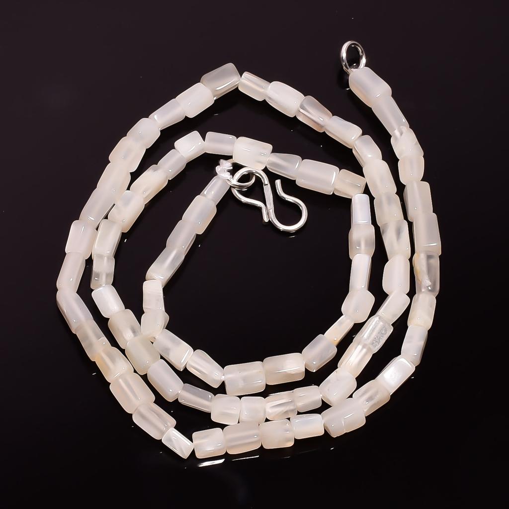 Natural White Moonstone Gemstone Radiant Smooth Beads Necklace 17" UB-3435 UB-3435