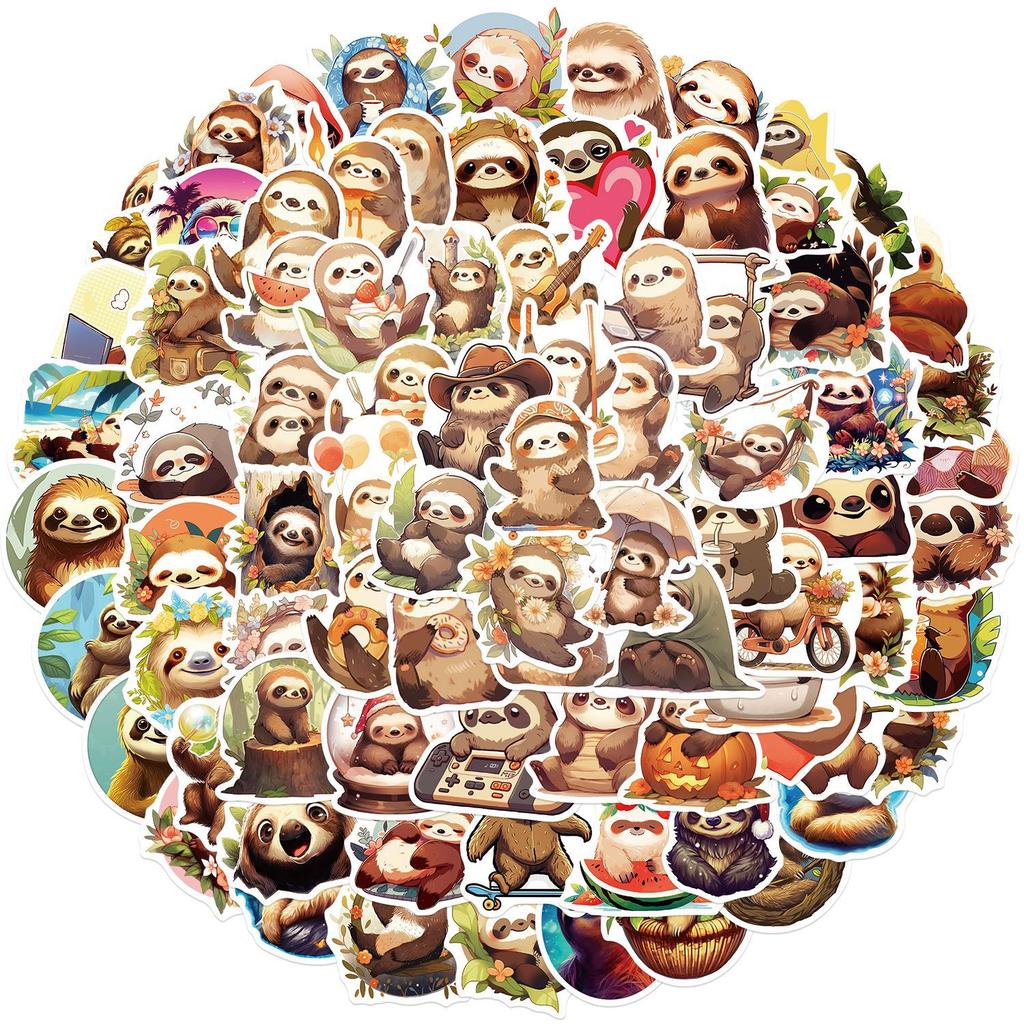 100 Cartoon Sloth Doodle Stickers Decorate Guitar Notebook Suitcase DIY Waterproof