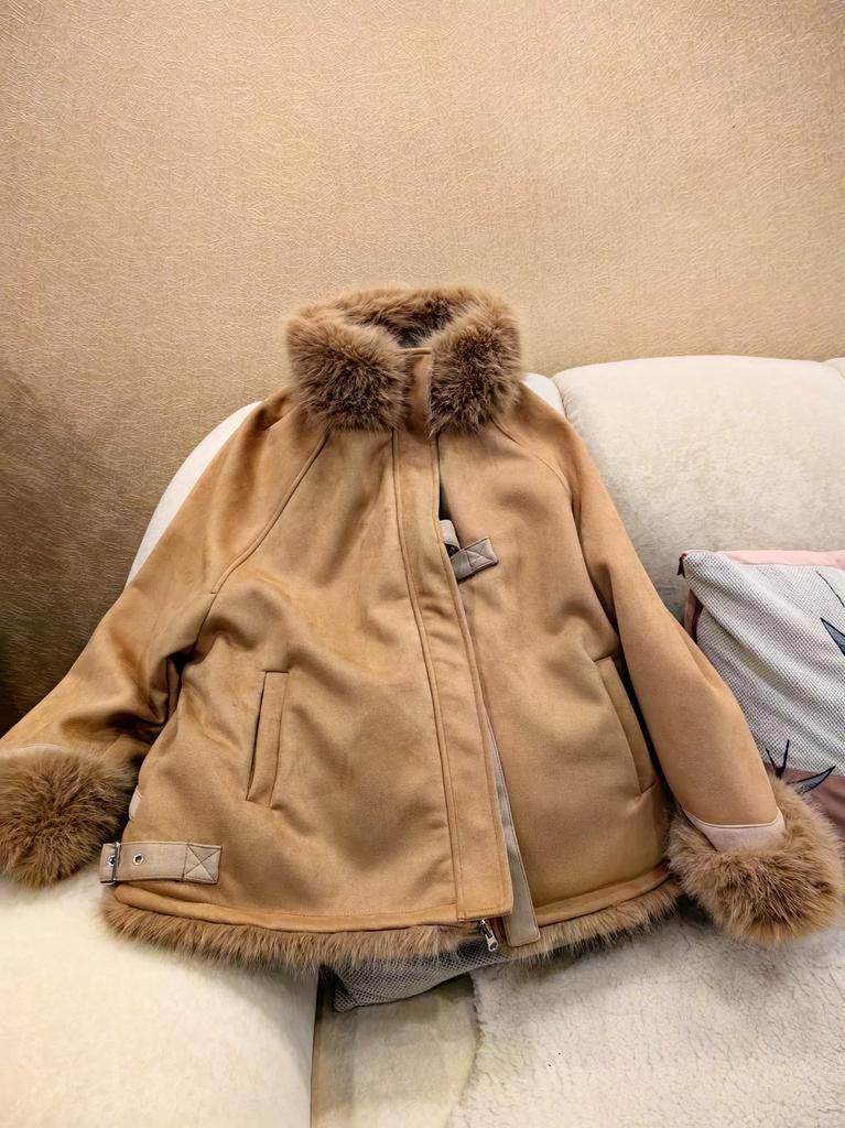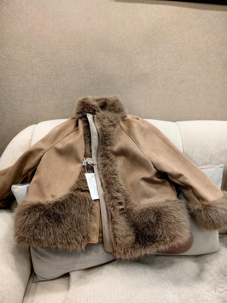 Winter Jacket Outerwear Women Long Warm Suede Parka Coat Patchwork Long Sleeve