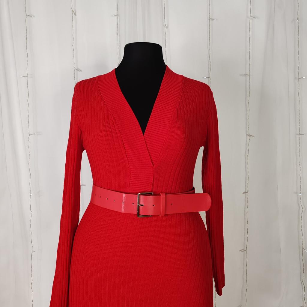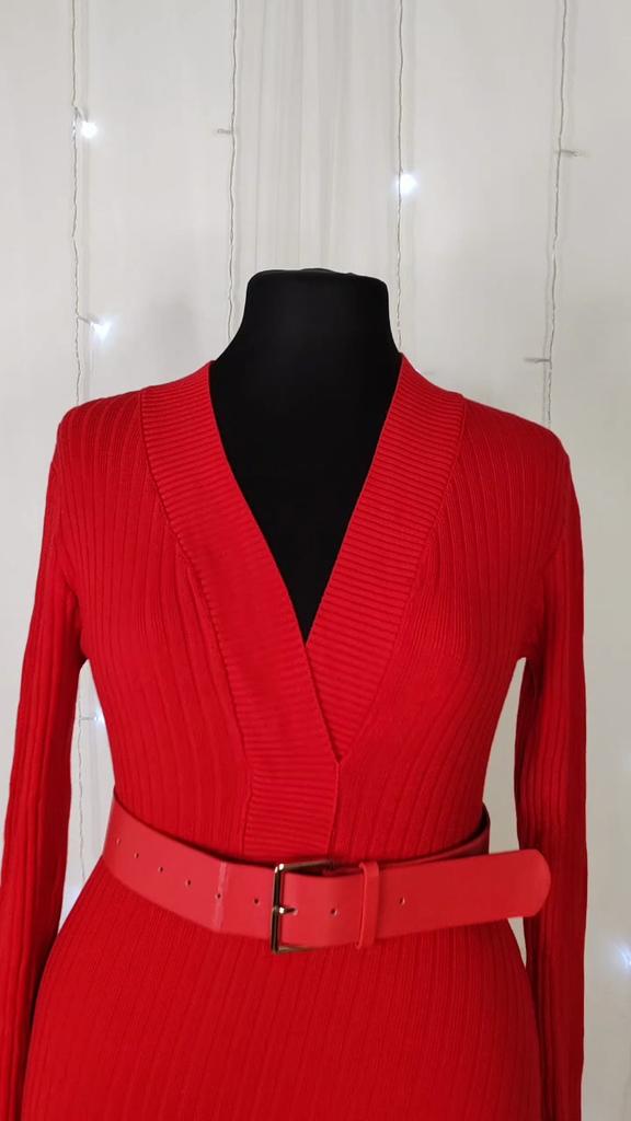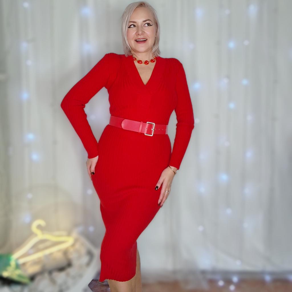 Korean Style Autumn Winter Women Warm Sweater Dress V Neck Beige Black Red Knitting Dress Knitted Office Lady Dress With Belt