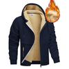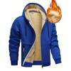 Men's Comfortable Lined Hooded Jacket - Casual Solid Color Blue Zipper with Drawstring Hoodie, Zipper Pocket and Button Front, Soft Texture Clothing