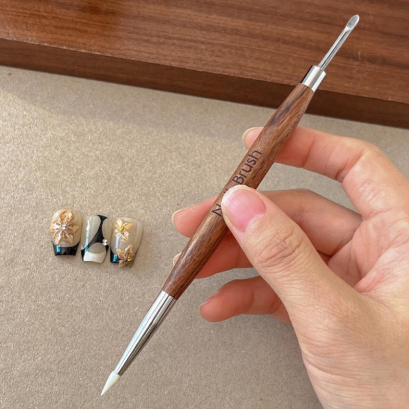 Multifunctional Sandalwood/Acrylic Double Headed Nail Art Brush Carving Flower Painting Pen Mixing Pen Diy Manicure Tool