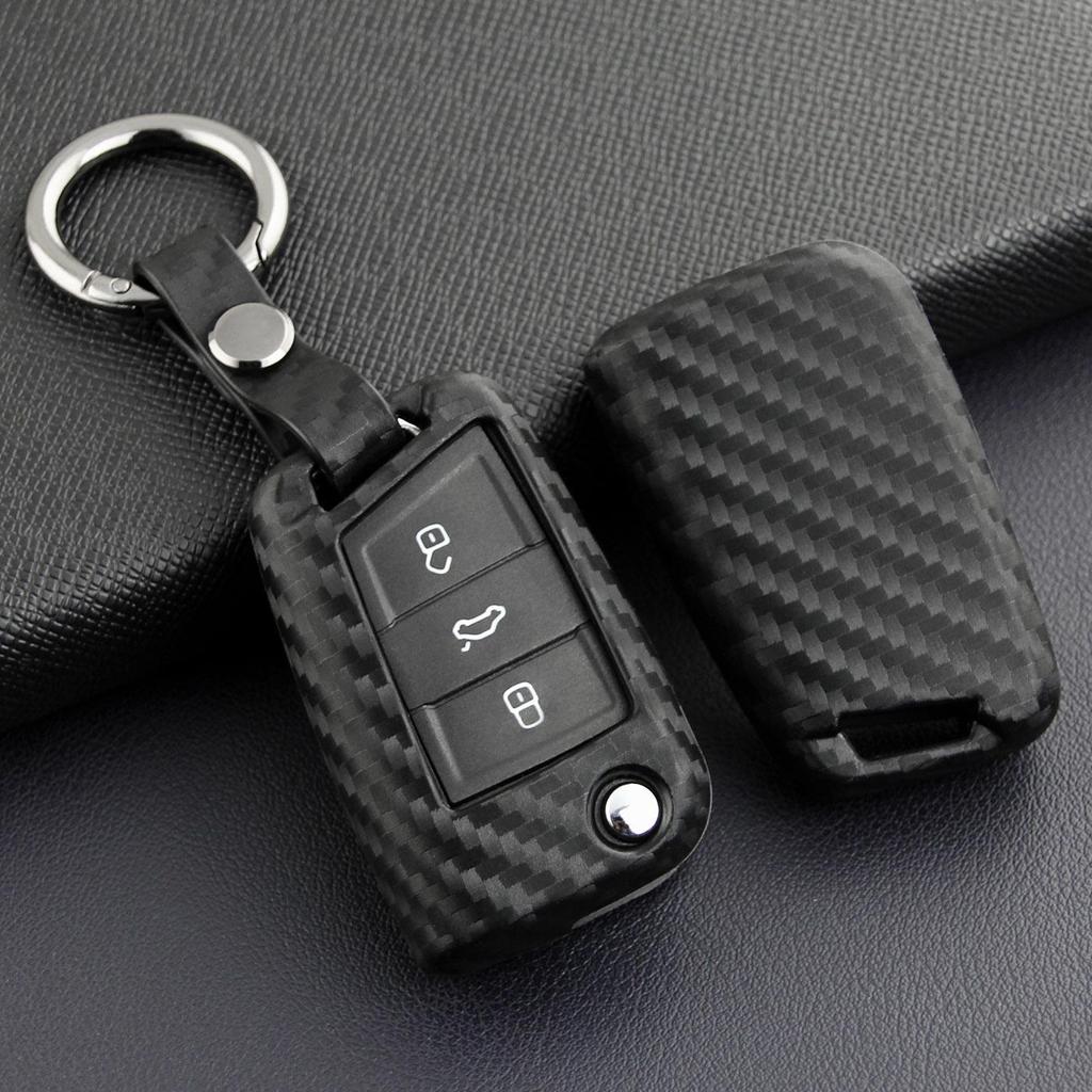 Carbon Fiber Silicone Key Case for VW Lamando, Golf 7, New Tiguan L, Teramont