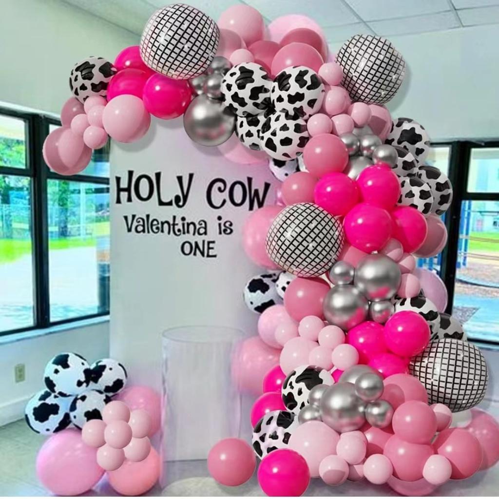 Denim Pink Balloon Arched Wreath Set, Peach Silver Cow, Print Farmer