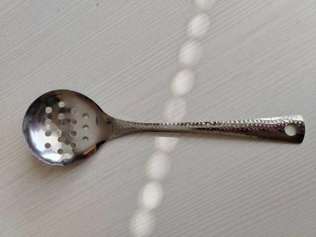 A small ladle with holes. Very convenient in the kitchen for some cooking. Sp