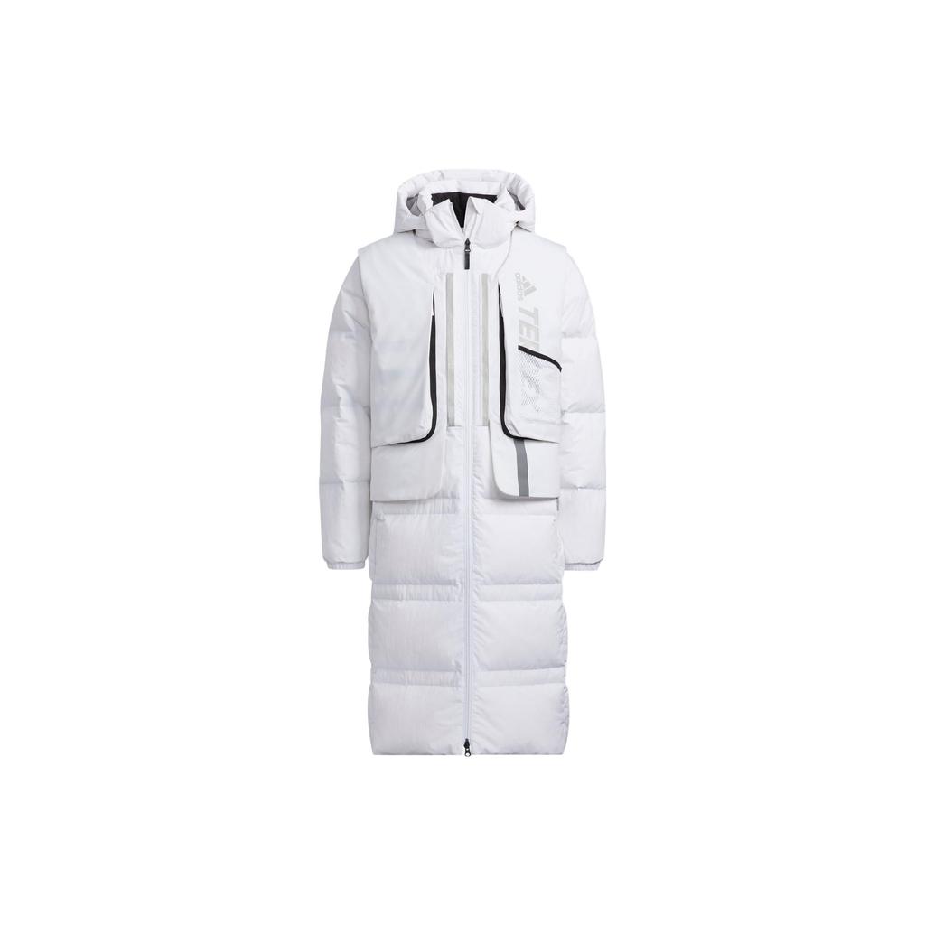 Adidas Long Down Jacket Solid Color Outdoor Windproof Mid-Length Three-In-One Goose Down Coat Unisex Jacket White H13854