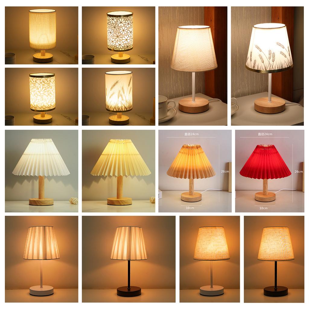 Led Bedside Lamp Night Light Desk Table Study Beside Room Bedroom Sleep Lighting Decoration Retro Pleated Sleeping
