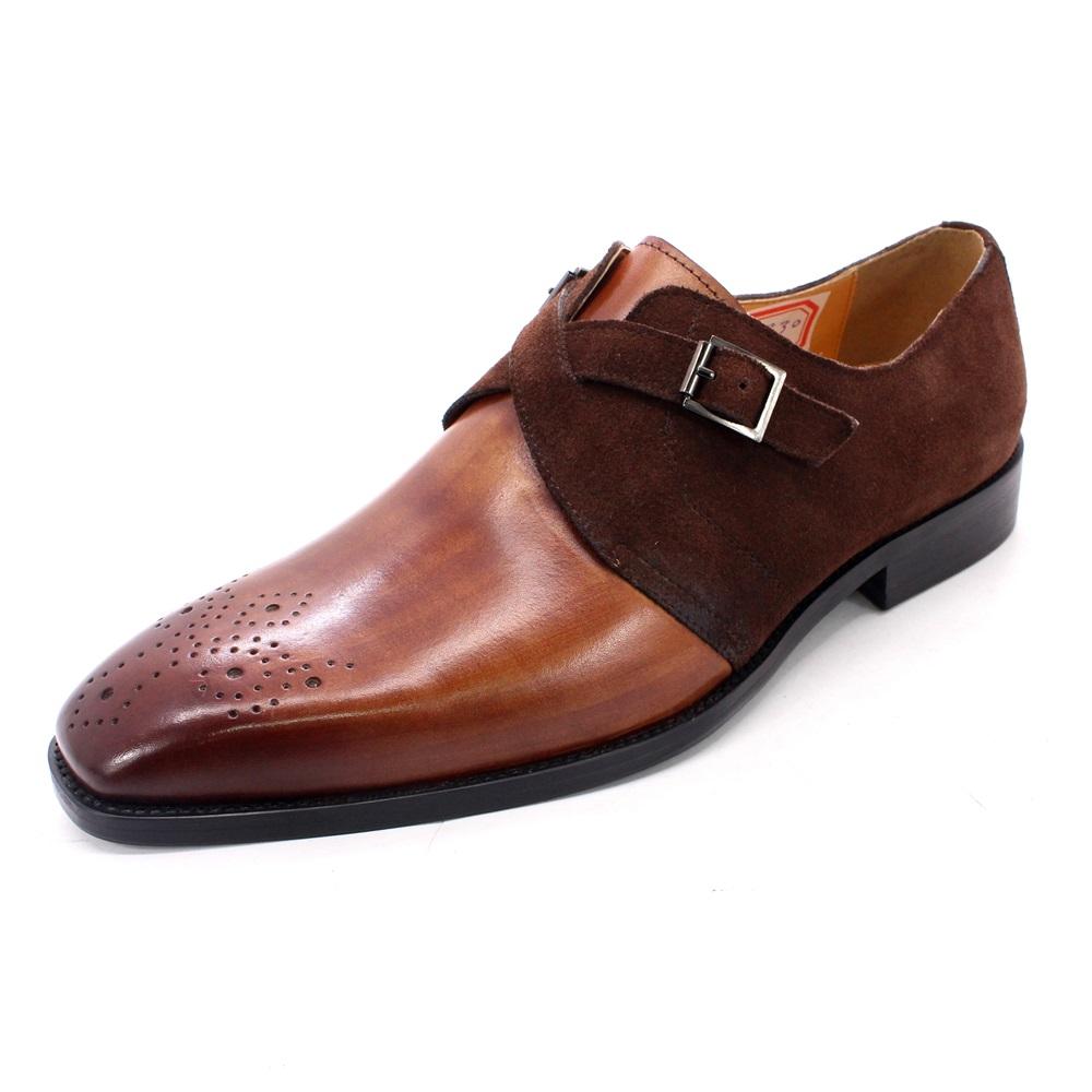 Fashion FELIX CHU Men's Classic Monk Strap Formal Shoes Genuine Leather Suede Oxford Brogue with Buckle Detail for Wedding Dress Shoes