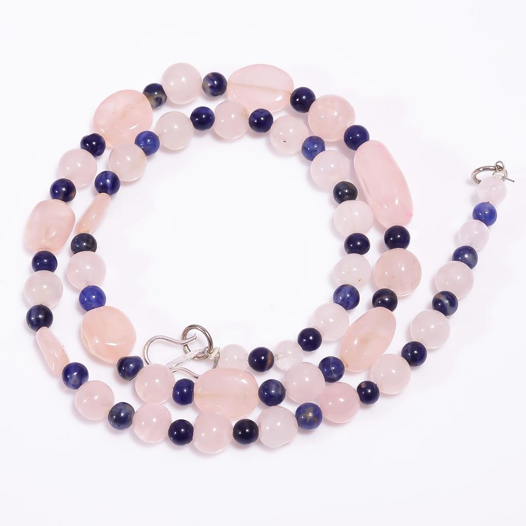 Natural Rose Quartz Sodalite Gemstone Beads Necklace 4-17 Mm 18" UB-8027 UB-8027