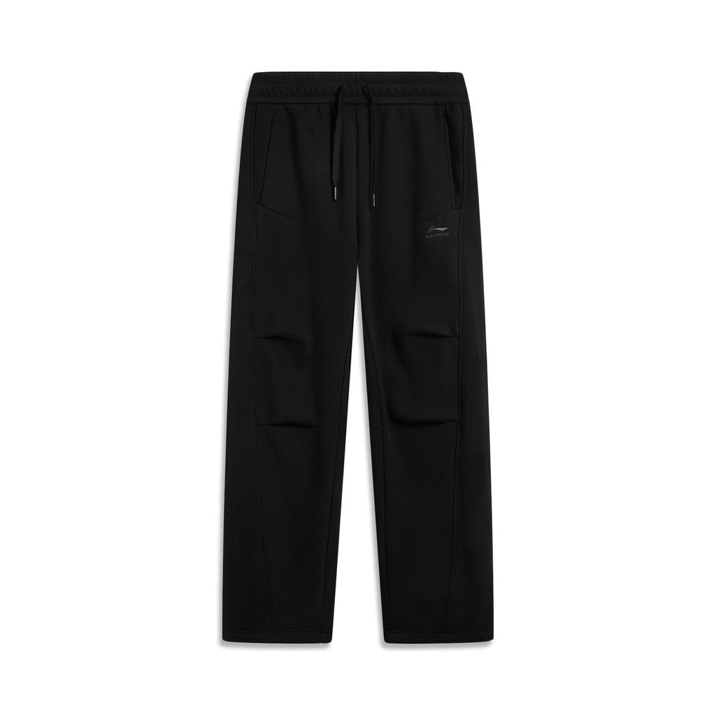 Li-Ning Sports Lifestyle Series Straight Leg Lace-Up Simple Versatile Casual Fleece Lined Warm Knitted Sports Pants Women Pants Black AKLV956-5