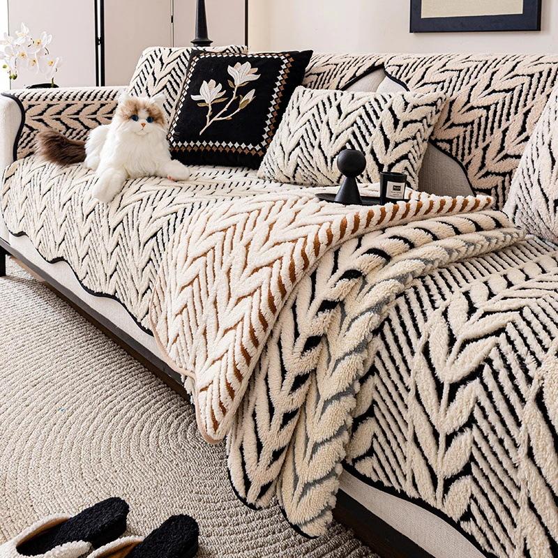 Autumn And Winter New Non-Slip Light Luxury Relaxation Plush Sofa Cushion Leather Sofa Cover Simple Full Cover Backrest Towel