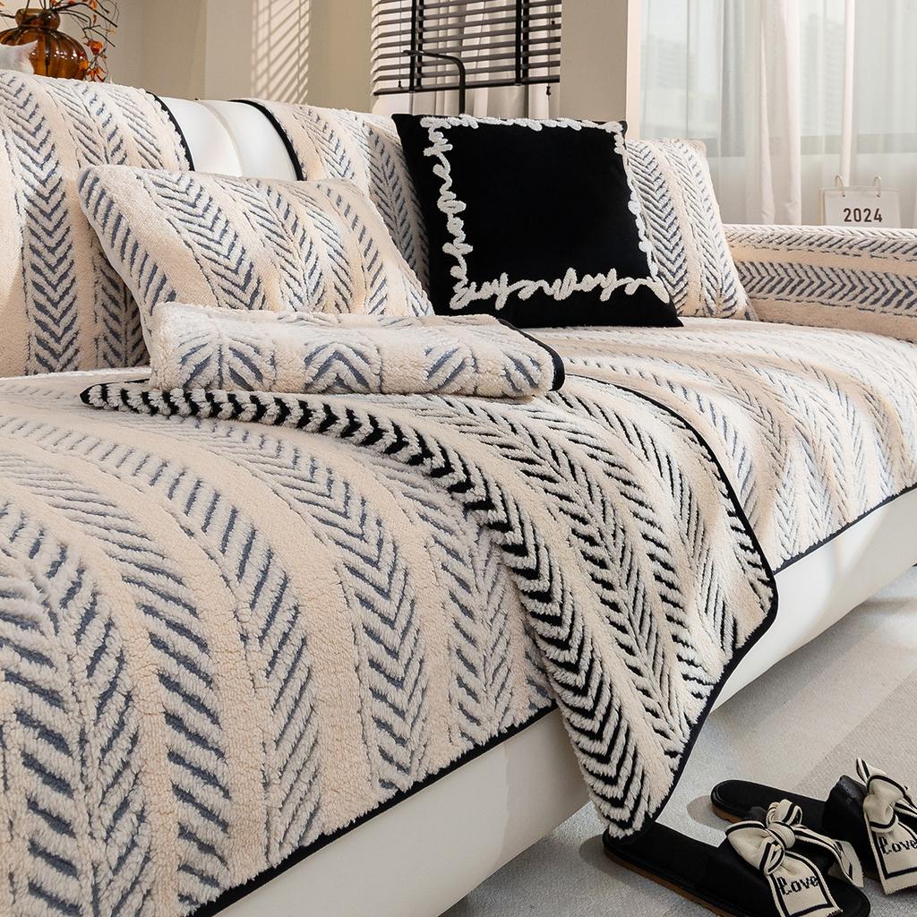 Plush Sofa Cushion Autumn And Winter New Four-Season Universal Non-Slip Leather Cushion Light Luxury High-End Cloth Cover Blanket Cover