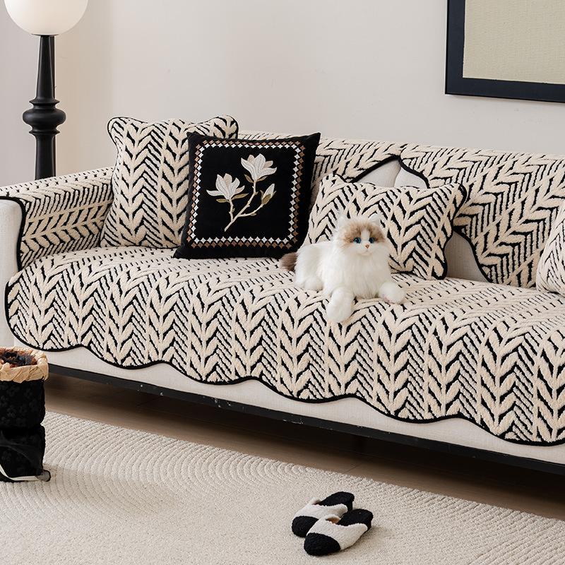 New Leather Sofa Cushion Autumn And Winter Plush Non-Slip Seat Cushion Light Luxury High-End Sofa Cover Cloth Towel