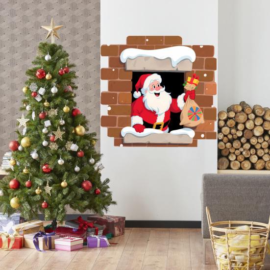 Festive Design: Featuring Santa Claus bursting through the wall, this sticker creates a joyful Christmas ambiance. Perfect for children's rooms or living spaces, infusing warmth and holiday cheer into any environment.