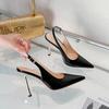 New Pointed Black Patent Leather Light Mouth High Heels Women's Stiletto Single Shoes Metal Heel Empty Temperament Sandals