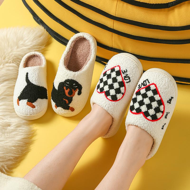 Fashion Winter Women's Slippers Halloween Cute Interesting Cartoon Little Black Dog Indoor Warm Comfort Home Bedroom Soft Plush Shoes
