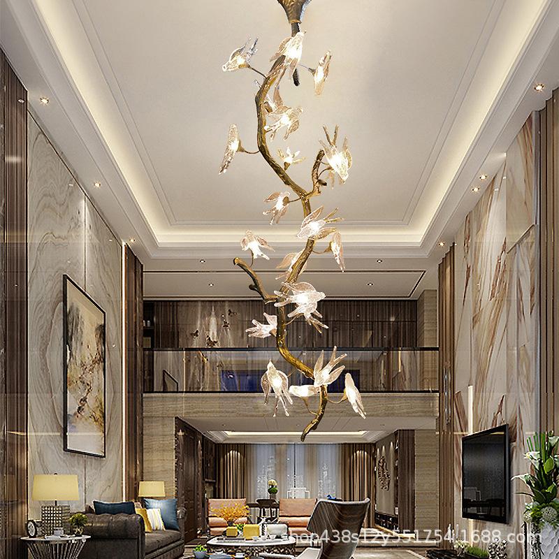 French Luxury Pendant Lights Resin Lamp Dining Room Villa Vintage Glass Bird Pendant Chandelier Tree Branch Decorations