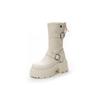 Fashion 9CM Microfiber Leather Autumn Boots Flats Plush Ankle Booties Women Platform Wedge Thick Sole Motorcycle Winter Shoes