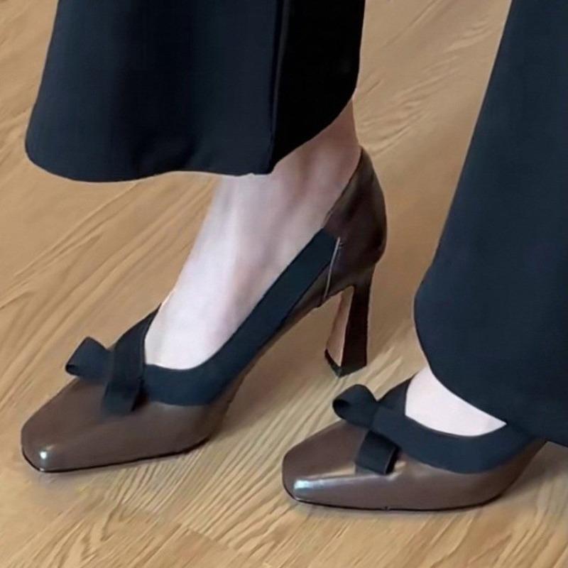 Fashion Retro Temperament Commuter Versatile Block Heel High Heels Women's Fashion Bow Single Shoes