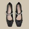 Fashion 2024 Elegant Woman Summer Round Toe Ballerina Flats Shoes Cute Silk Satin Rhinestone Casual Flats Female Bow Mary Jane Shoes