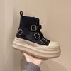 Fashion Platform Booties Autumn New Round Toe Metal Buckle Colorblock Side Zipper Anti-Slip Wear-Resistant Single Shoes