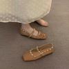 Fashion Cutout Naked Apricot Temperament Sandals Women's Summer New Rivet Fairy Square Toe Flat Mary Jane Sandals
