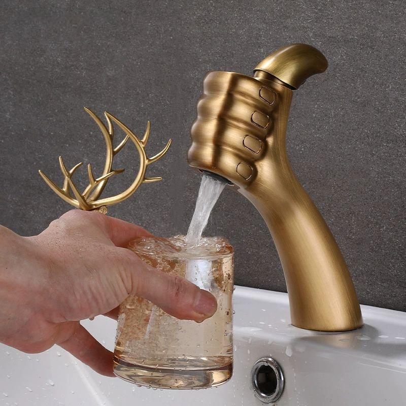 New Style Bathroom Basin Faucet Hot and Cold Water Thumb Faucet, Washbasin Mixers Taps, Universal Basin Faucet Black Chrome Gray