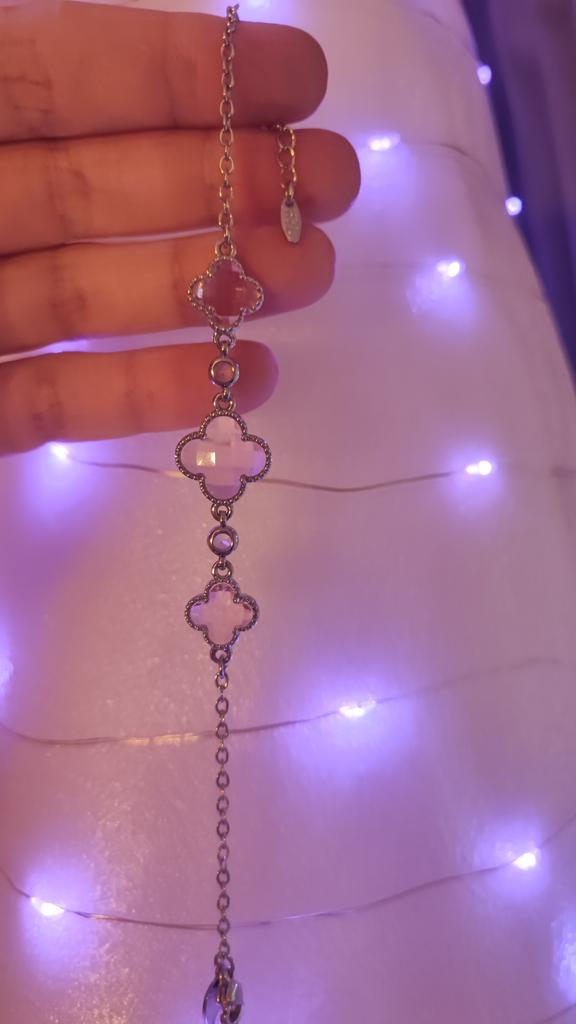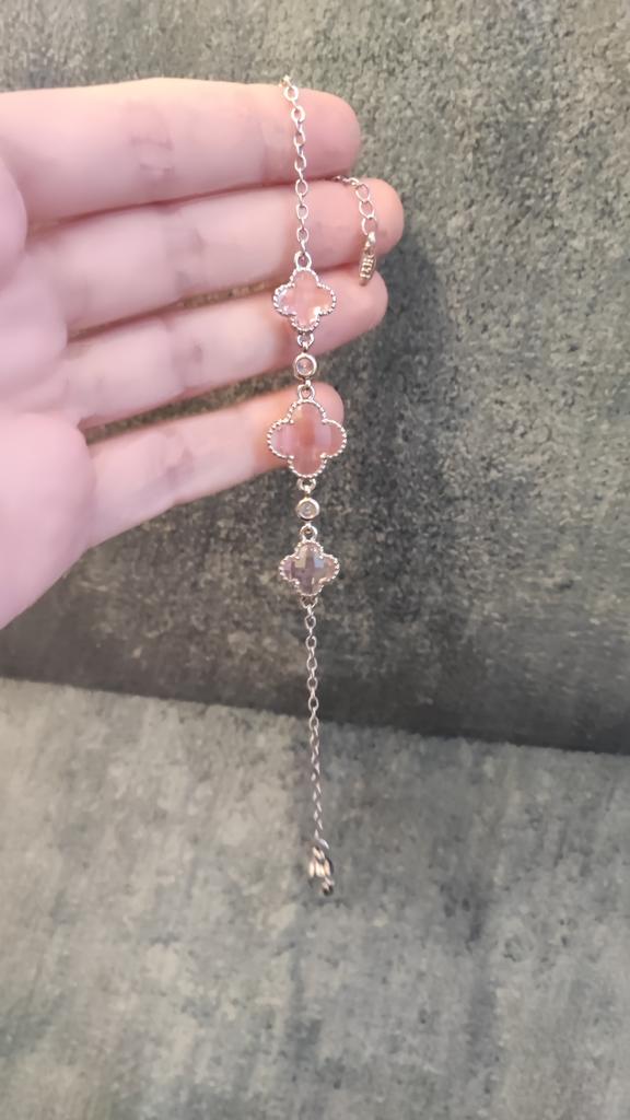 The bracelet is very cute, the color is a delicate pink, it looks beautiful