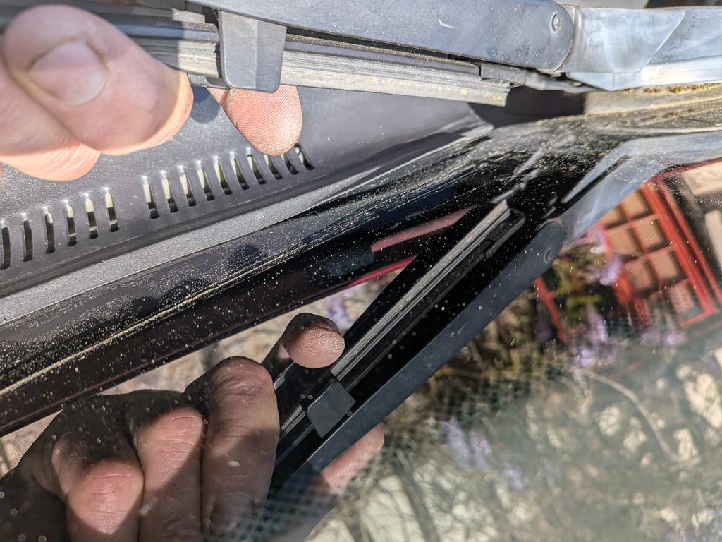 Hello, The rubber blades lift in the center of the windshield and are not in contact with the windshield