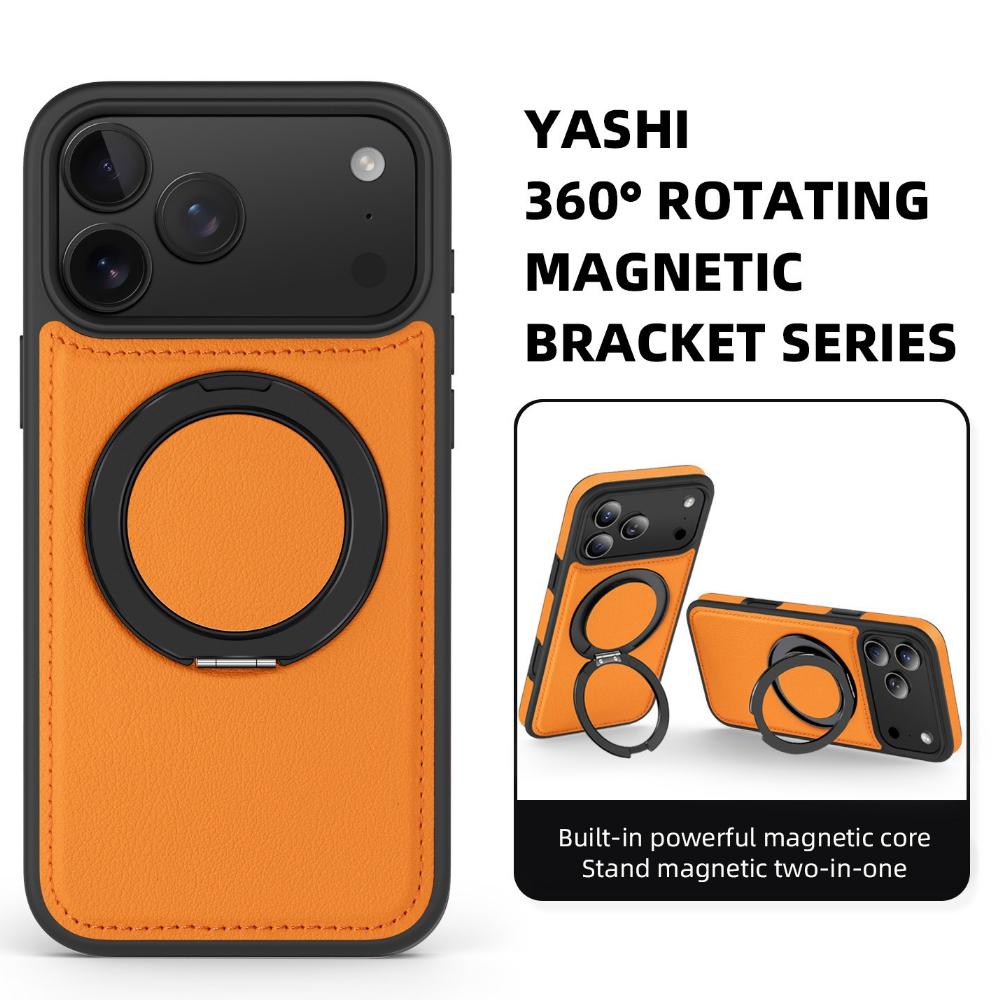Leather 360 Ring Magnetic Holder Phone Case For iPhone 17Air 16 Plus 14 15 13 12 11 17Pro Max For Magsafe Wireless Charging Phone Cover