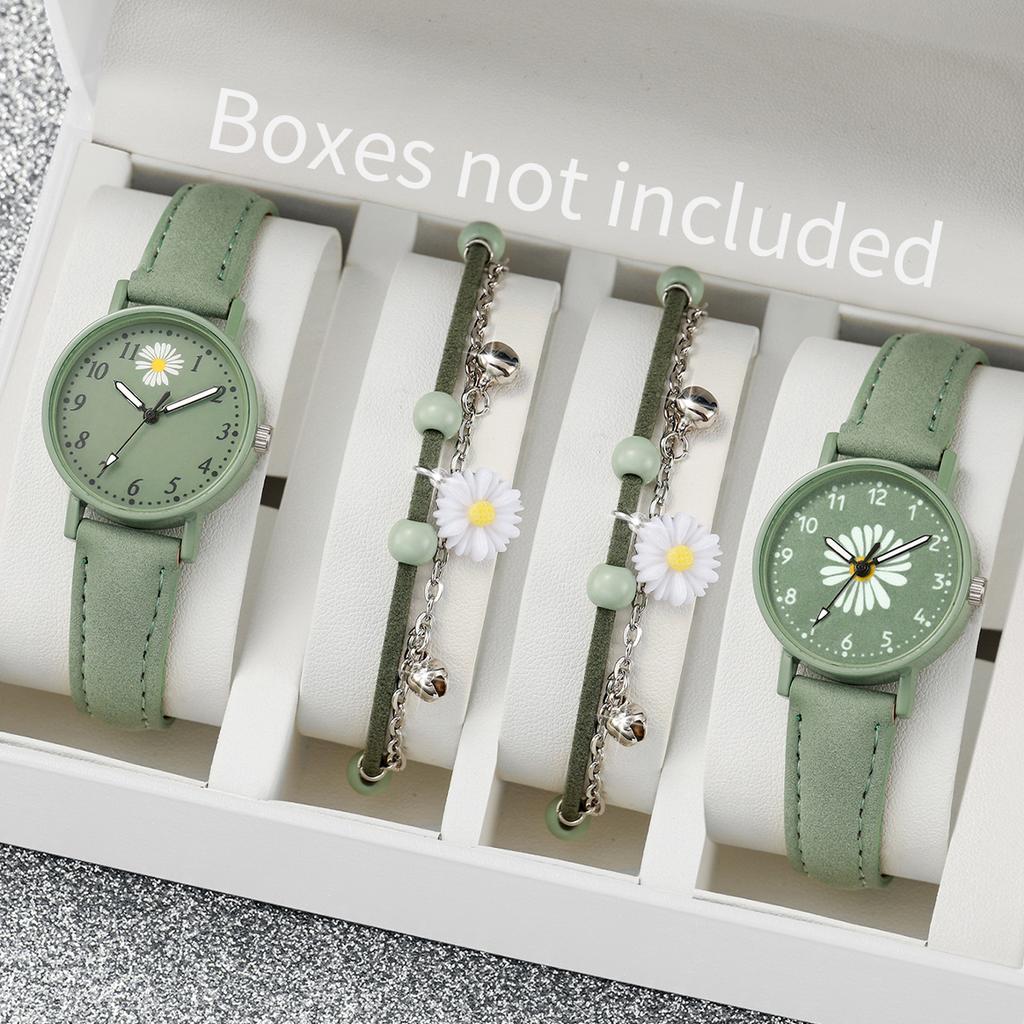 4PCS/Set Fashion Women's Watch Sweet Leisure Versatile Flower Dial Quartz Watch with Chrysanthemum Leaf Shaped Bracelet Set