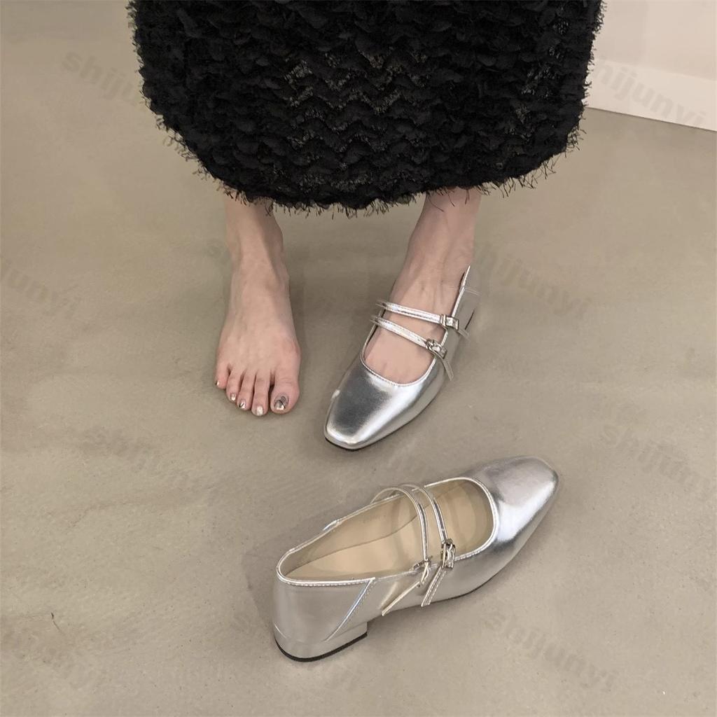 Fashion Women Luxury Bowtie Mary Janes Women Square Toe Shiny Leather Flats Ballets Femmes Silver Dance Party Ball Bridal Wedding Shoes