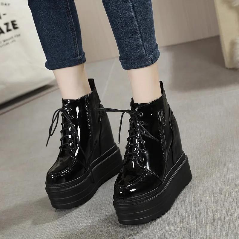 Fashion 14CM Super High Heels Platform Wedges Height Increasing Women Autumn Ankle Boots