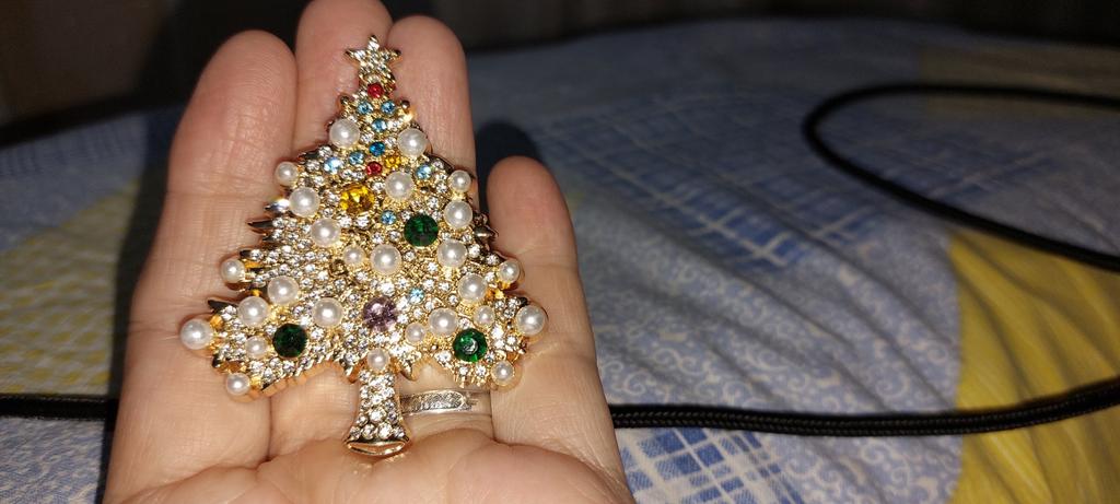 Dazzling Decor, Elegant Rhinestone Christmas Tree Brooch - Luxury Alloy & Enamel Pin, Perfect Holiday Gift