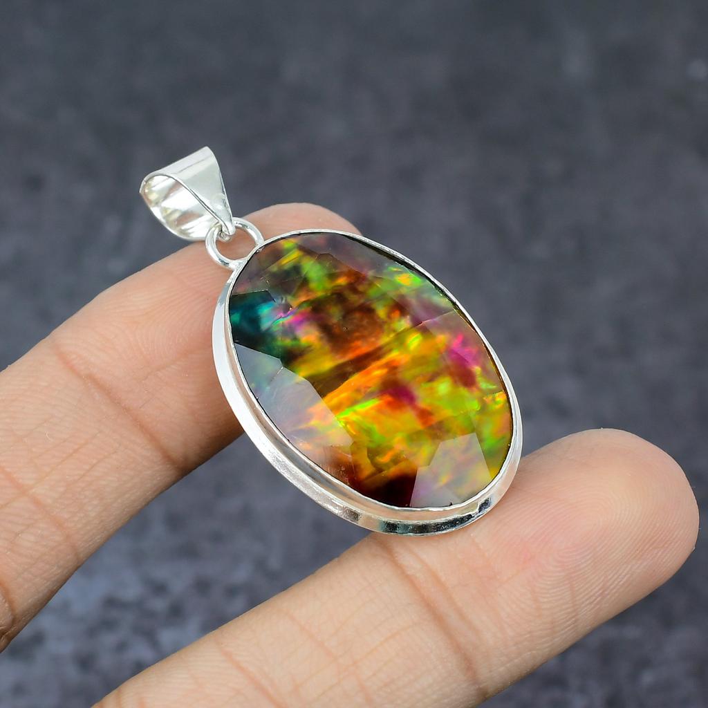 Ammolite Gemstone 925 Sterling Silver Gift Jewelry Pendant 1.80"