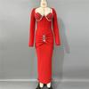 New Long-sleeved Bandage Dress Temperament Long Dress Fashion Dress Heavy Industry Diamond Women's Temperament