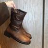 Niche Round-toe Pleated Boots, Retro Simple, Slimming, Low-heeled Martin Boots, New Plus-size Boots for Autumn and Winter