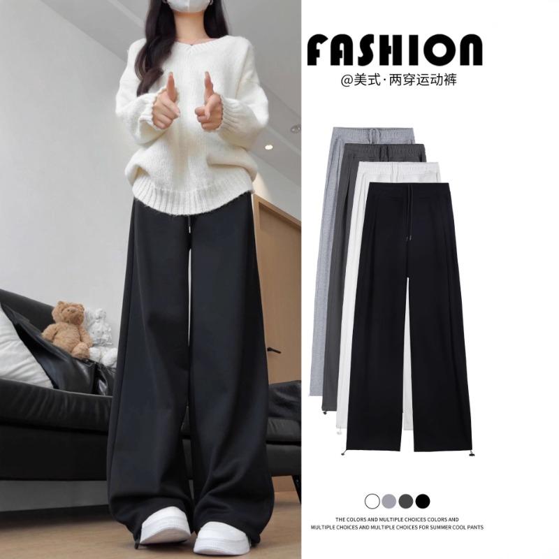 Grey Sweatpants Women's Autumn and Winter New High-waisted Fashion Casual Pants Small Wide-leg Fleece Sweatpants