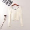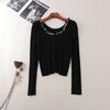 Scale Sequin Large Round Neck Long Sleeves Thin Knitwear Six Wool Pure Color Silm Pullover Clavicle Top Women