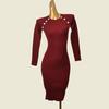 Fashion Style Metal Buckle Sunken Stripe Silm Long Sleeves Knitting Dress Autumn Sexy Sheath Bottom Long Dress