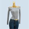 Export Cut Label Knitting Sweater Women's Spring and Autumn French Sexy off-Shoulder off-Shoulder Silm Long Sleeves Inner Wear Short Top