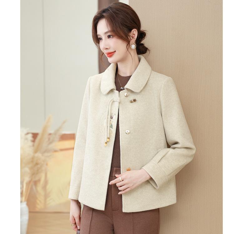 Mom's Autumn Wool Coat New Style Middle-aged and Elderly Women's Spring and Autumn Temperament New Chinese Style Wool Top