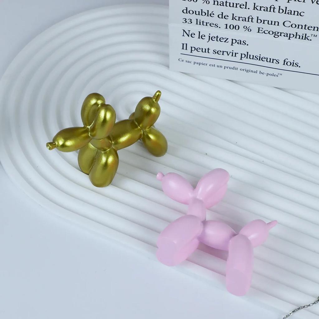 1PC Animals Figurine Resin Cute Shiny Balloon Dog Shape Statue Art Sculpture Figurine Craftwork Home Decor with Antiskid Mat