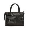 - **Structured Satchel Bag Details**: Features a sleek structured satchel silhouette with vintage-textured PU finish, prominent white stitching, metal hardware accents, and versatile carrying options (single-shoulder, crossbody), exuding retro and edgy charm. Two color options cater to diverse style preferences.
