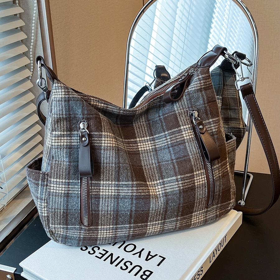 - **Structured Multi-Way Bag Details**: Features a sleek structured silhouette with woolen material, classic plaid design, and versatile carrying options (handheld, single-shoulder, crossbody), exuding retro and stylish charm. Multiple color options cater to diverse style preferences.