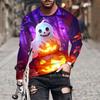 Autumn Round Neck Halloween Ghost and Pumpkin Pattern 3D Printed Top Fashionable Casual Long Sleeved Men's T-shirts